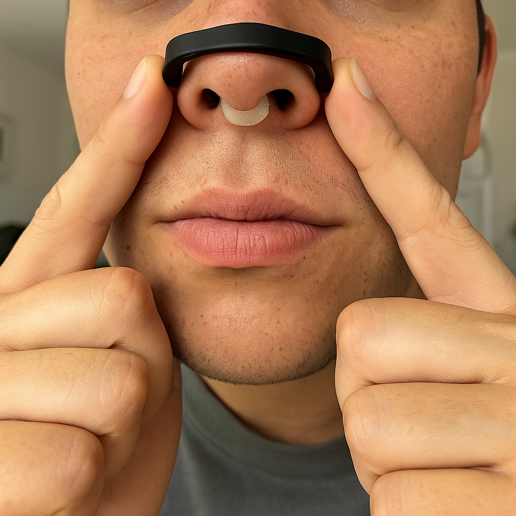 Yes! This is where Intake's magnetic design truly shines. Traditional adhesive strips rely on sticky glue that weakens with movement, sweat, and oils. Intake's magnetic bands create consistent tension that doesn't degrade—they stay securely in place whether you're a back, side, or stomach sleeper. Our nasal pads use a medical-grade adhesive that's specifically designed to work with oily skin, night creams, and movement.